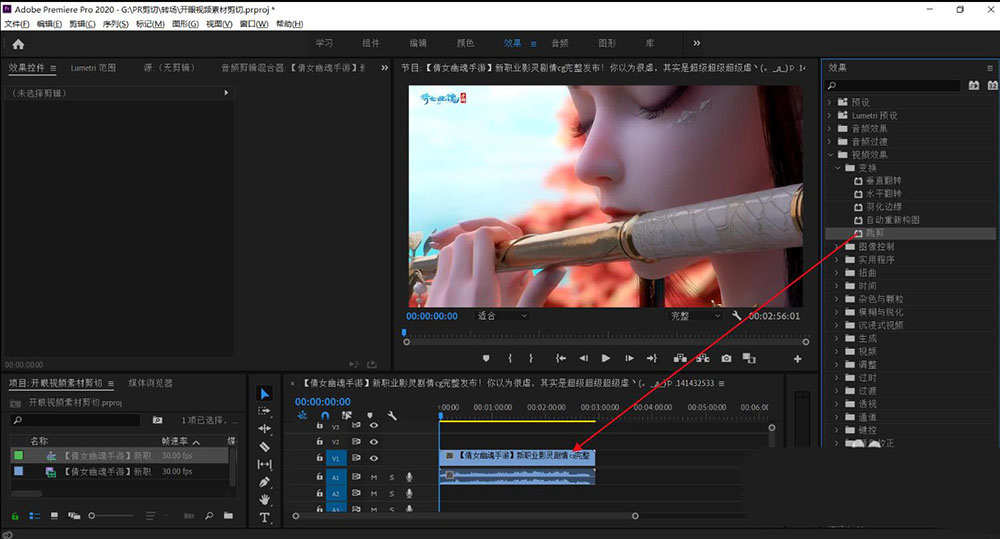 3.找到剪切,拖到视频上面。