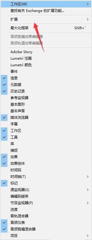 1、安装好插件后,我们点击上方的窗口,点击开。(如果安装好后发现点击没有反应,请参考premiere2020中Beat Edit插件点击没反应怎么办? )