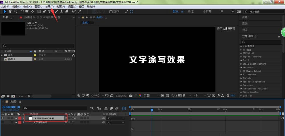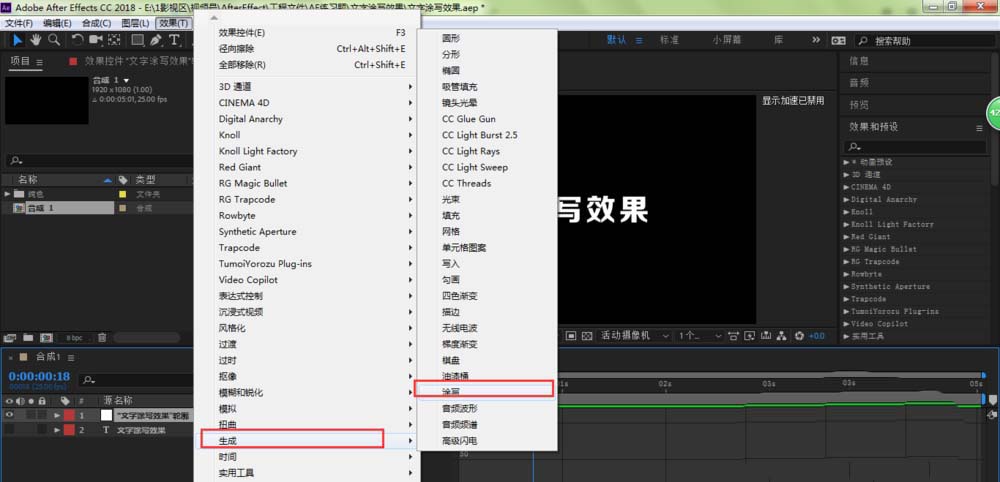 1、打开AE,找到涂写效果。