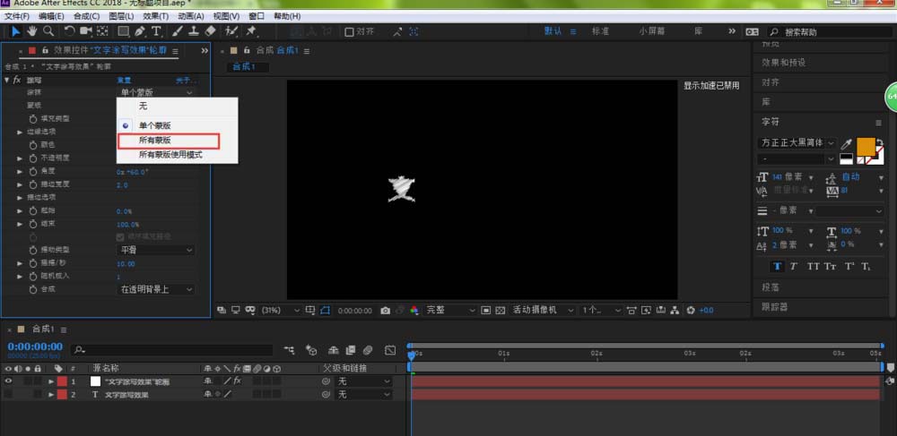 1、我们在AE的涂写效果中找到描边选项。