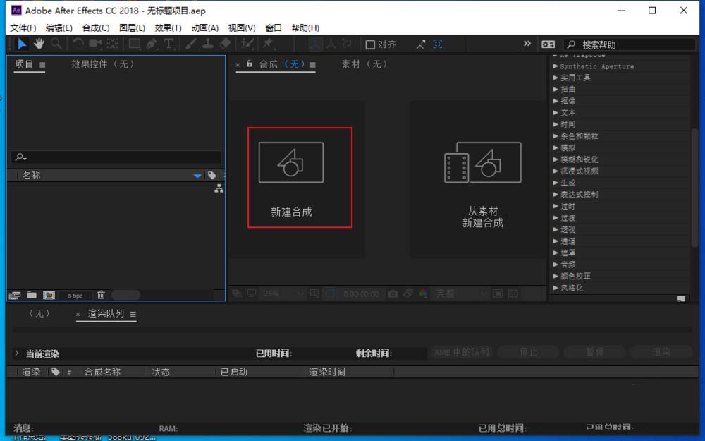 1、打开ae,新建合成。