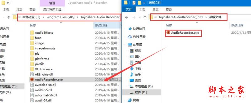 7、将软件包里破解文件夹的补丁粘贴到软件安装目录里(默认C:\Program Files (x86)\Joyoshare Audio Recorder)