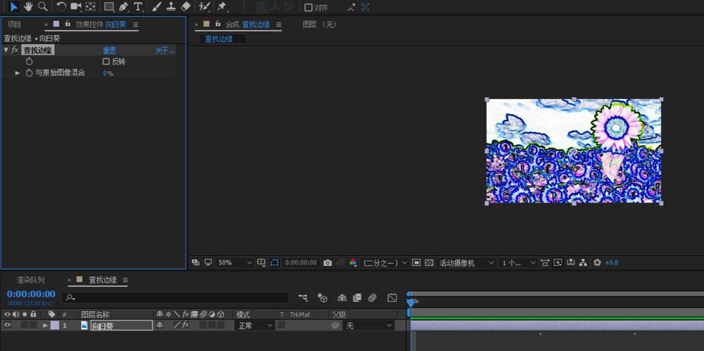与原始图像的混合:设置添加查找边缘的效果与原始图像的混合程度的设置;百分比数值越大,效果越接近原始图像;100% 显示原始图像;0%完全是添加查找边缘之后的效果;