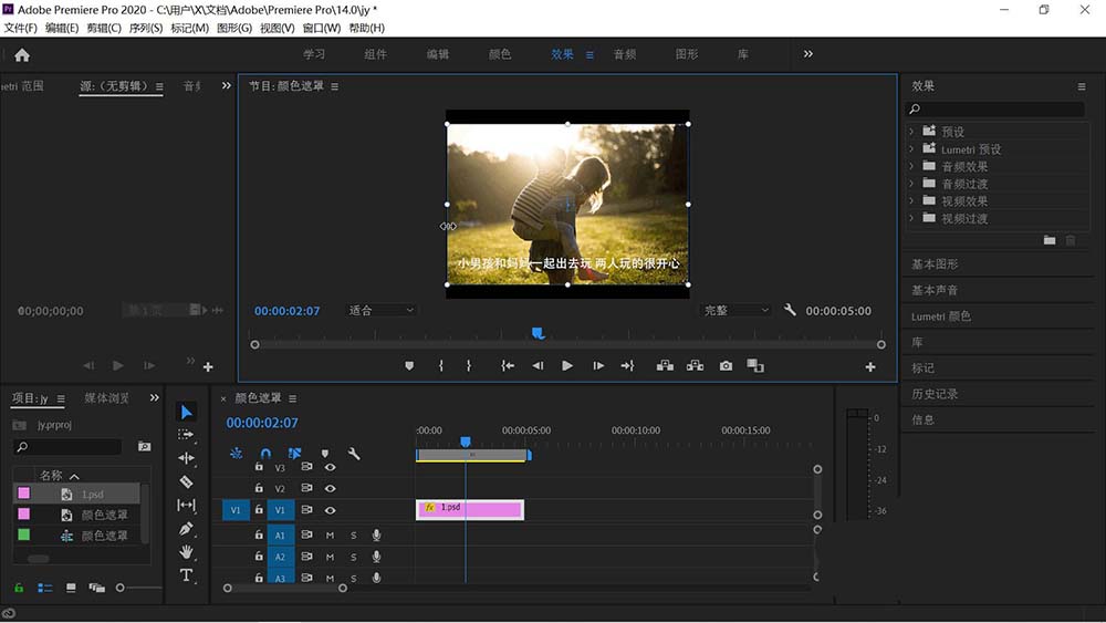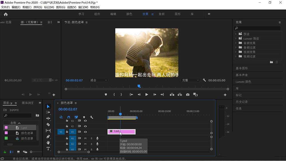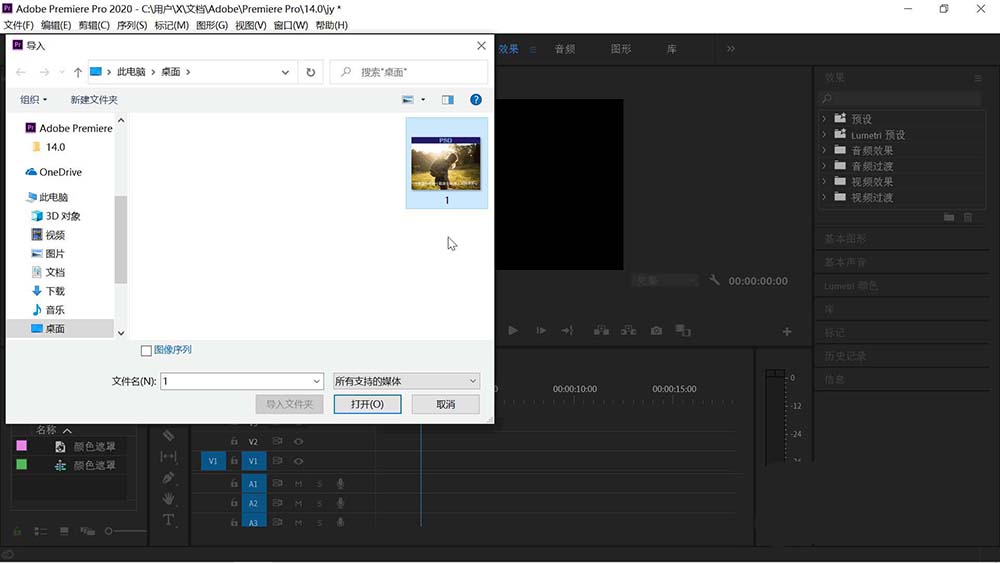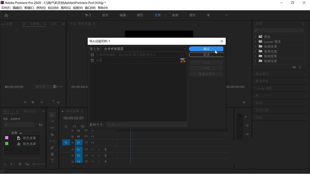 3、打开pr,导入刚才存储的psd文件。