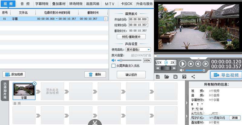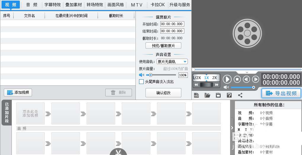 2、点击添加视频,选择要添加的视频,点击打开,会弹出“预览/截取”的提示框,点击确定,会看到视频被成功添加到了列表中。