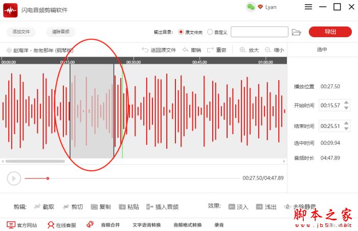 以上就是小编为大家带来的如何为音频插入静音?闪电音频剪辑软件插入静音的方法的全部内容,希望能对您有所帮助,小伙伴们有空可以来脚本之家网站,我们的网站上还有许多其它的资料等着小伙伴来挖掘哦!
