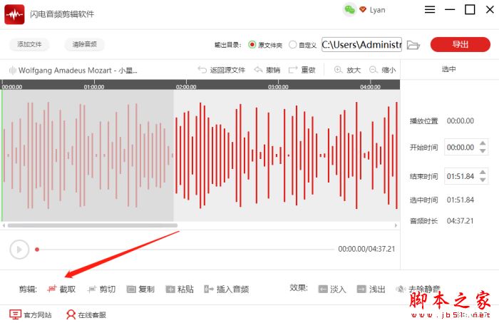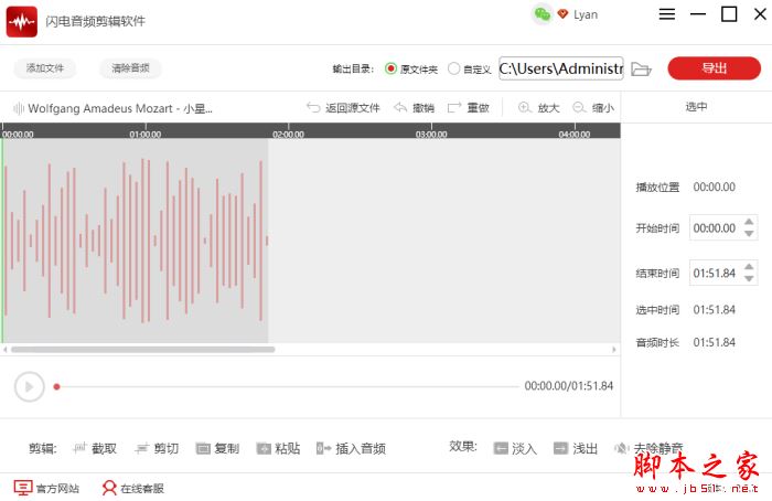 以上就是小编为大家带来的如何截取某一段音频?闪电音频剪辑软件截取音频的方法的全部内容,希望能对您有所帮助,小伙伴们有空可以来脚本之家网站,我们的网站上还有许多其它的资料等着小伙伴来挖掘哦!