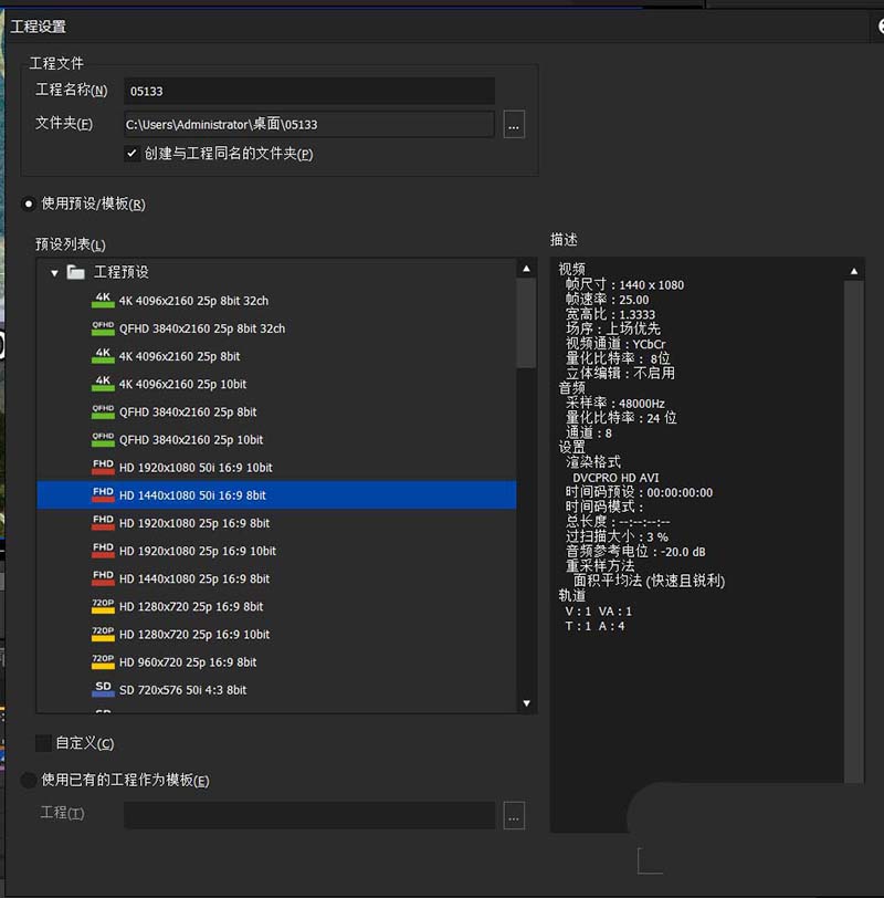 1、打开edius新建工程文件;