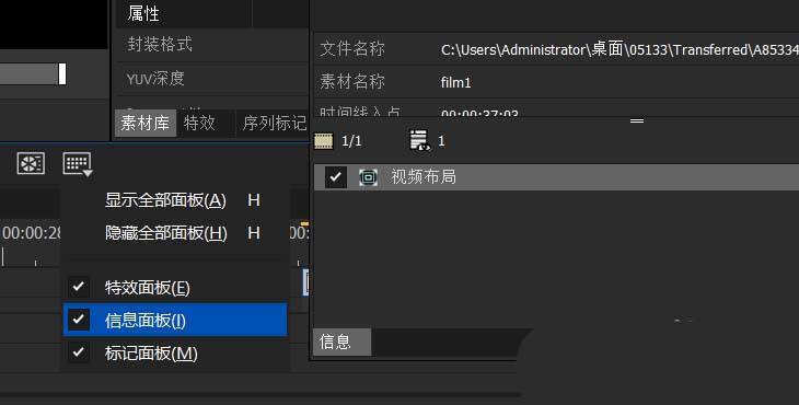 5、选择素材文件轨道上的素材,打开信息面板,调整下方轨道的素材文件大小即可;