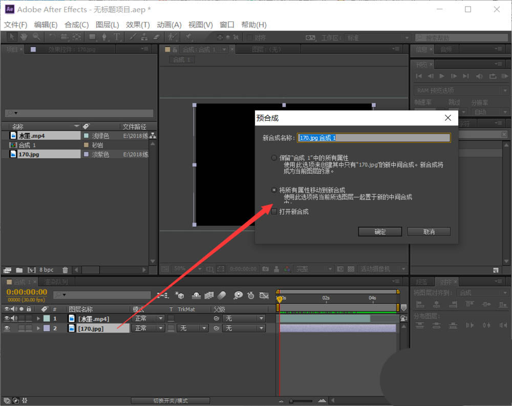 5、然后回到项目图层——选中水墨图层和人物图层——鼠标右击——预合成