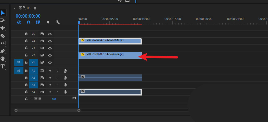 3、再把同一个视频拖入第一个视频上轨,再把这一个视频调整跟上一个视频尺寸位置一致。