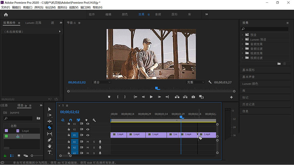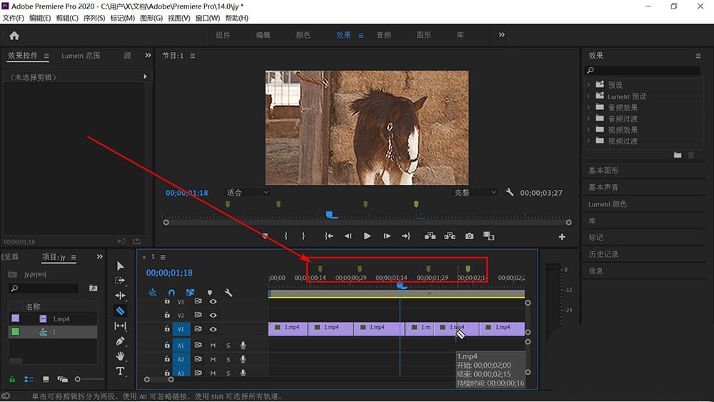 3、对素材进行剪辑。