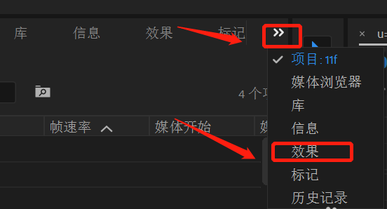4、打开效果面板。