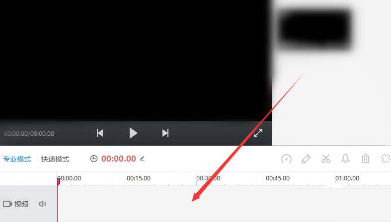1、在快剪辑中的专业模式的情况下【把素材拖到时间线上】