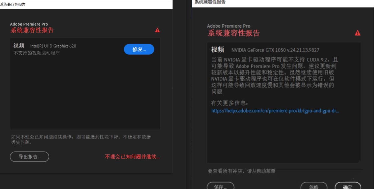 根据Adobe Premiere Pro 2020的系统兼容性报告显示,我们当前电脑的显卡驱动的版本与最新的PR软件不匹配,无法满足PR2020的显卡需求,该怎么解决这个问题呢?解决此问题的方法就是在显卡驱动官网下载最新版本的显卡驱动,详细请看下文介绍。