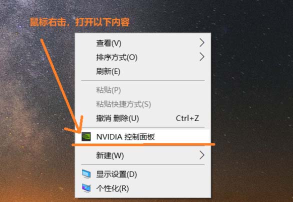 确定当前电脑的驱动程序型号,在电脑桌面空白处,鼠标右键,打开NVIDIA控制面板