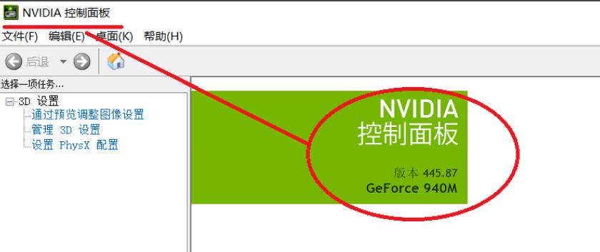 在NVIDIA控制面板的主界面,我们就可以看到我们当前电脑的显卡驱动的型号和版本号。如下图所示,就是本台电脑的显卡驱动的型号【GeForce 940M】