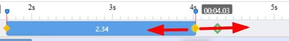 6、单独点击黄点左右拖动可以调整镜头存在的时间长短。
