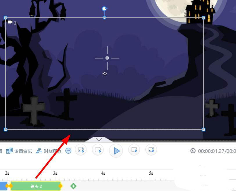 5、选中实线框四角的点拖动,可以调整镜头的大小。