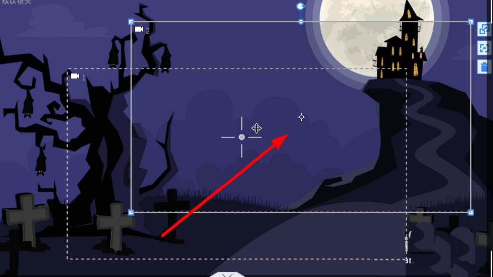 6、选中实线框上方的旋转柄,可以旋转镜头。