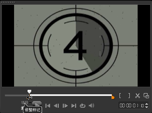 三、用同样的方法,将鼠标移动至修整标记按钮的结束按钮上,单击鼠标左键并向左拖动,至合适的位置释放鼠标左键,即可标记结束点。