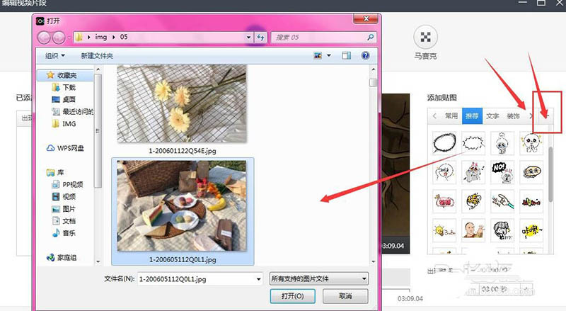 4、在右侧的贴图栏中,选择右侧的添加选项,打开进入到图库栏,然后添加图片置入