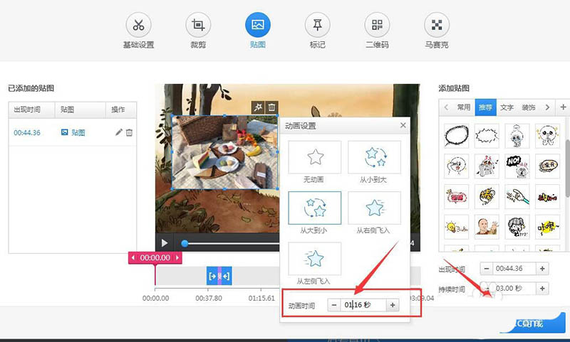 7、调整下方的动画时间长短,然后确定保存到导出视频