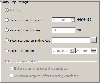 2、停止按长度记录。停止按大小记录。停止在结束的应用程序上录制。在指定的时间停止记录,并在记录完成后退出程序,在记录完成后关闭计算机。