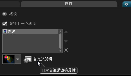 七、展开“选项”面板,切换至“属性”选项卡,选中“滤镜”复选框,单击“自定义滤镜”按钮。