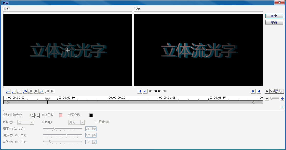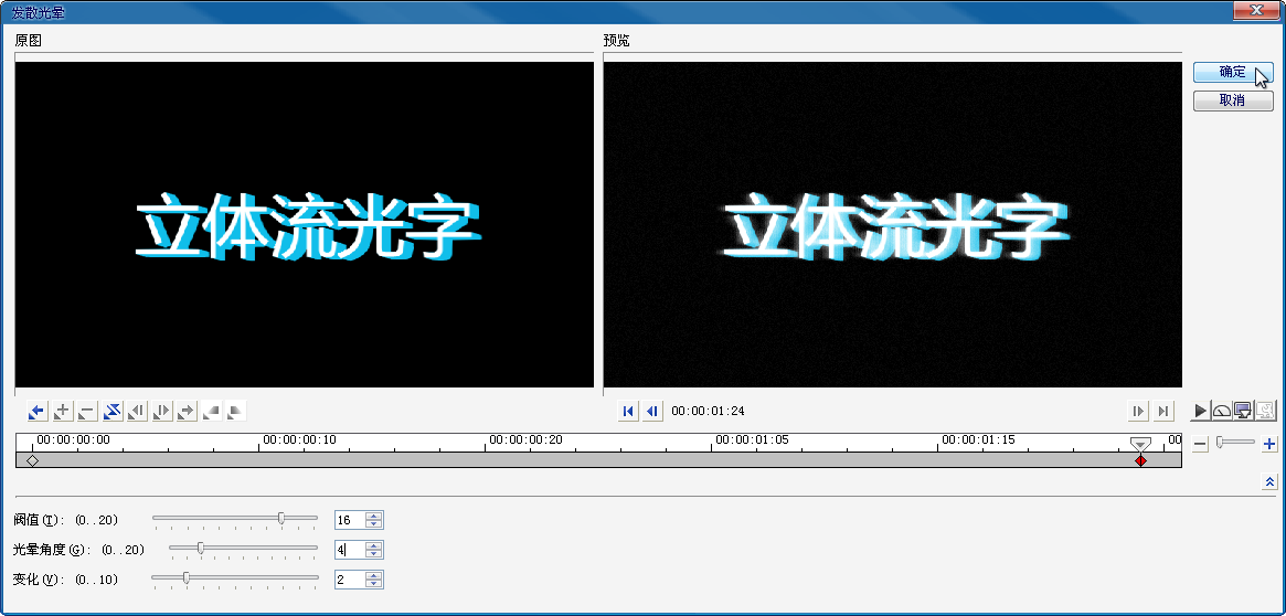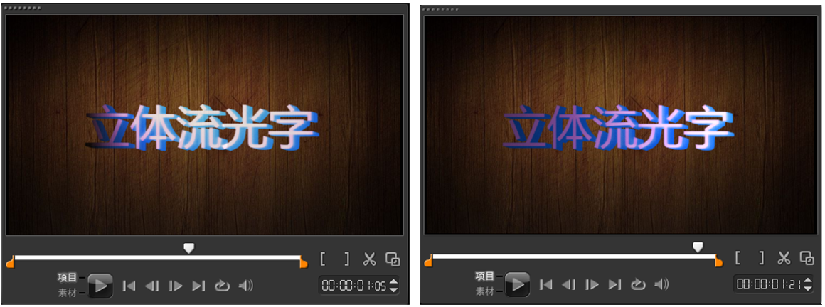 十七、单击导览面板中的“播放”按钮,即可预览最终效果。在预览窗口可以预览到流光字制作完成后的效果。