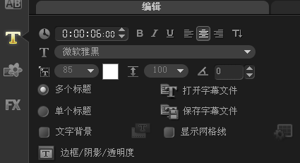 2、进入“选项”面板,在编辑选项卡中设置“区间”参数为6秒,“字体”为“微软雅黑”,“字体大小”参数为85。