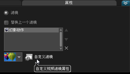 6、展开“选项”面板,切换至“属性”选项卡,选中“滤镜”复选框,单击“自定义滤镜”按钮。