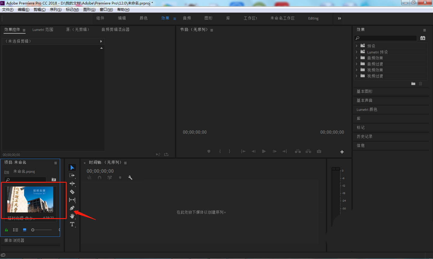 1、首先在电脑中打开PR软件,点击新建项目,创建一个剪辑项目。
