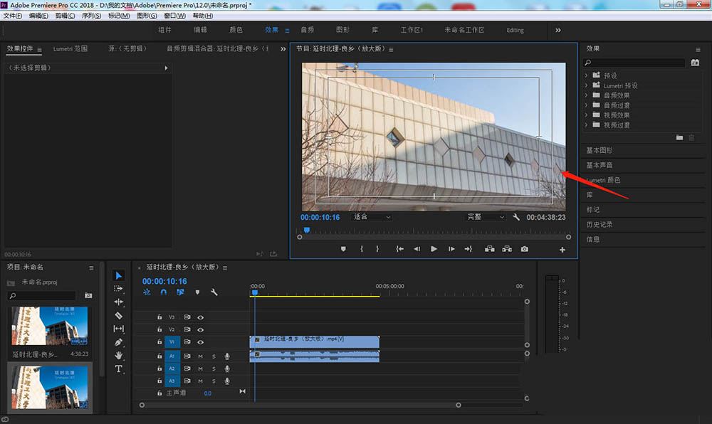 5、添加完成后,即可在监视器窗口中看到两个正方形的边距框,不要超过外侧正方形,即可在安全区域内添加字幕。
