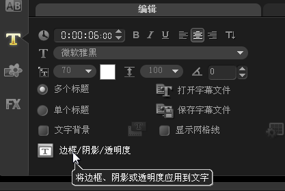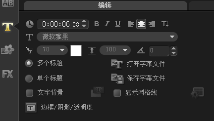 四、进入选项面板,在“编辑”选项卡中设置“区间”参数为6秒,“字体”为“微软雅黑”,“字体大小”参数为70。