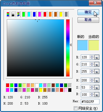 七、继续在会声会影中设置RGB参数为120、210、255,然后单击“确定”按钮完成设置。