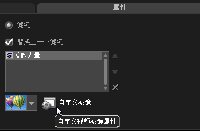 十五、展开“选项”面板,切换至“属性”选项卡,选中“滤光器”单选按钮,单击“自定义滤镜”按钮。