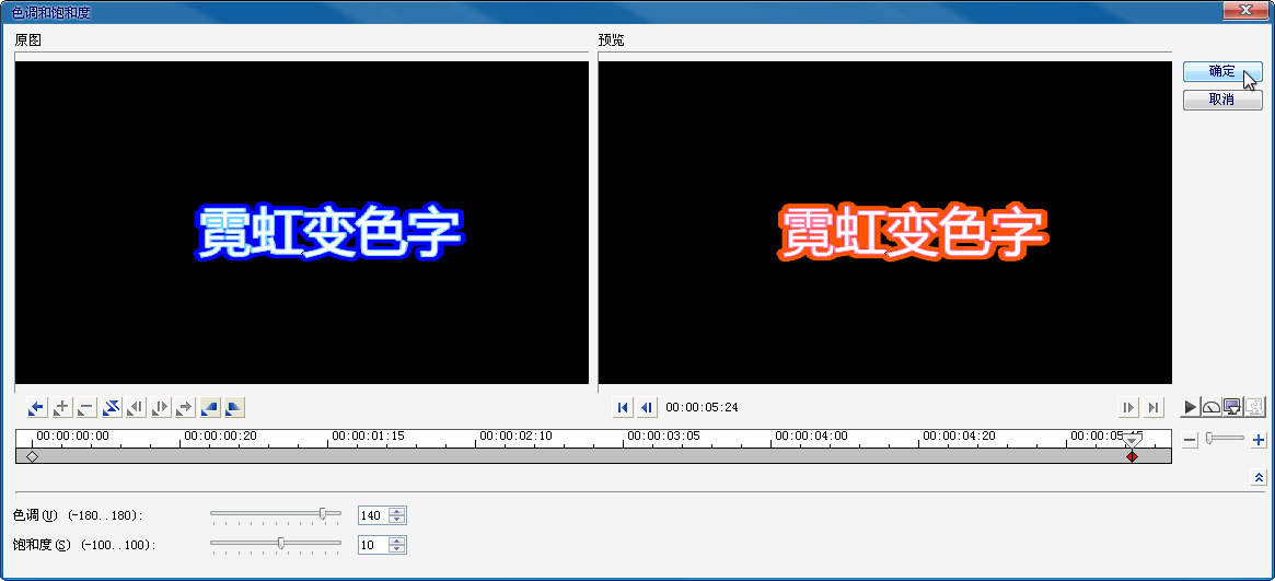 十七、选中第二个关键帧,设置“色调”参数为140,然后单击“确定”按钮即可完成操作。