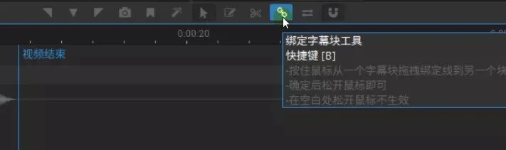 在工具栏上可以看到链条工具,点击一下,然后选择要绑定的字幕块,按住左键不要松,然后拖拽到要绑定的字幕块上,这个时候就完成了字幕的绑定。