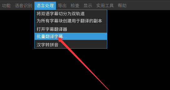 5、此时在时间轴中创建了副本的字幕后在菜单再选择”语言处理“选项