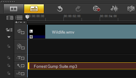 五、在声音轨中插入音频素材,调整区间使之与视频轨的素材区间一致。