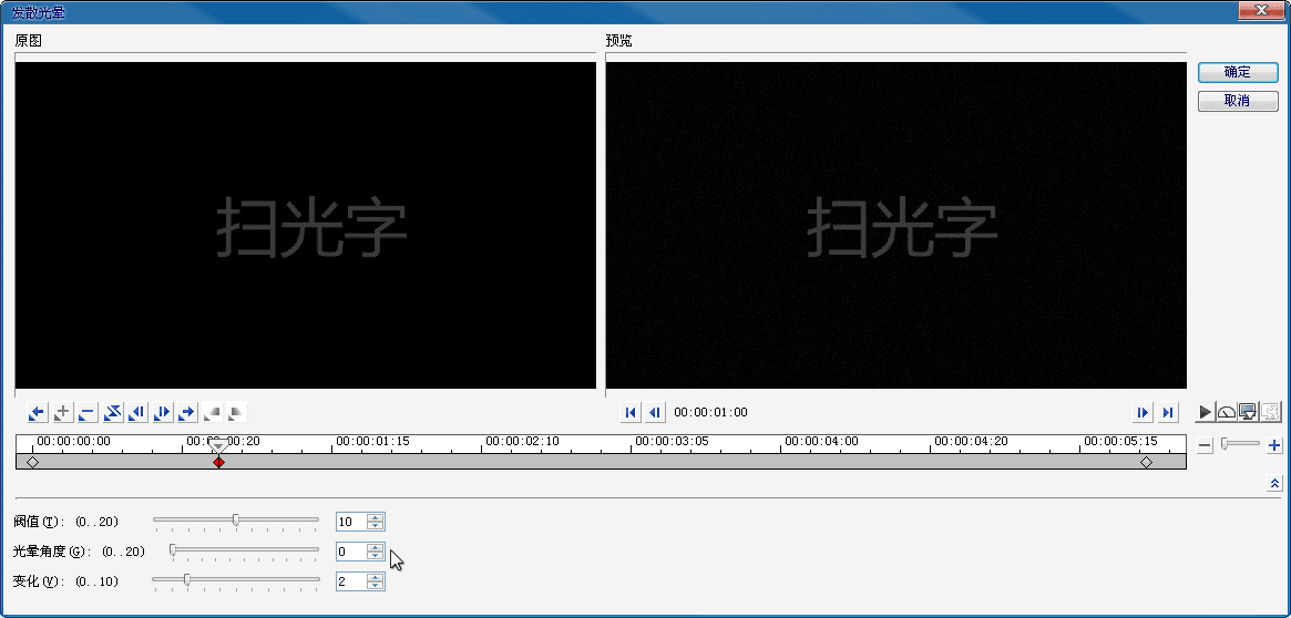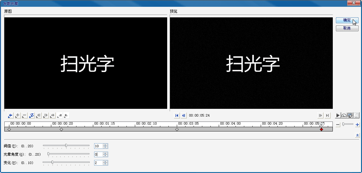 十六、选中最后一个关键帧,设置“阈值”参数为10,“光晕角度”参数为0,单击“确定”按钮,完成操作。