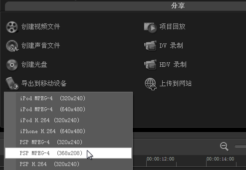 图3:选择PSP MPEG-4命令