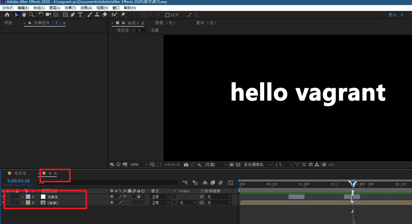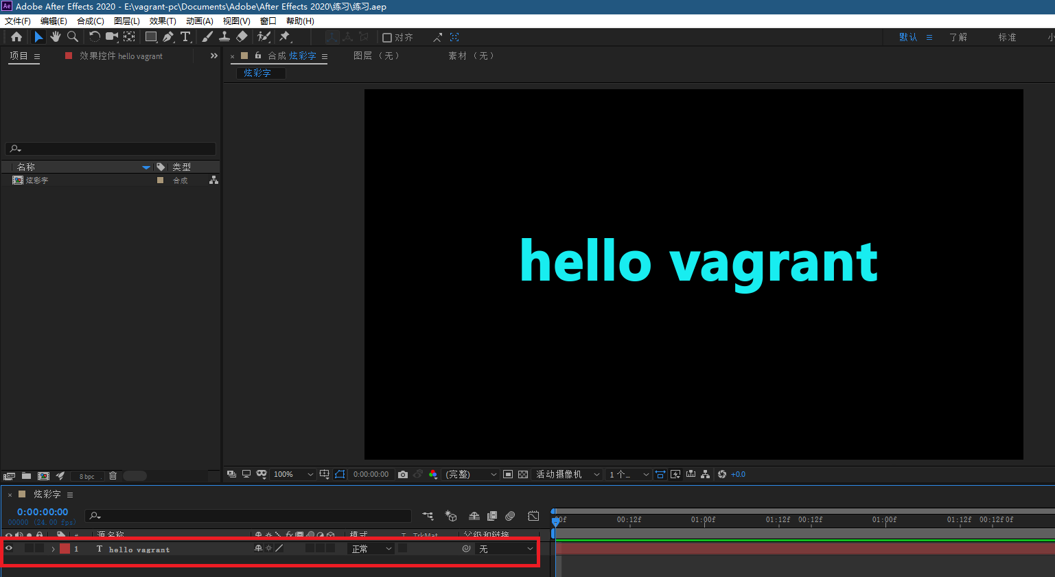 2、使用文字工具串创建一个文字图层,并输入文字,如"hello vagrant"。
