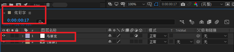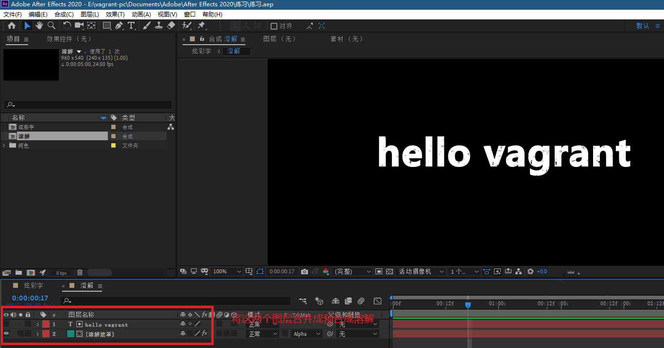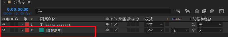 1、将文字图层和溶解遮罩添加到预合成,并命名为溶解。