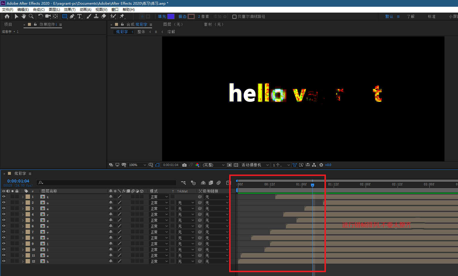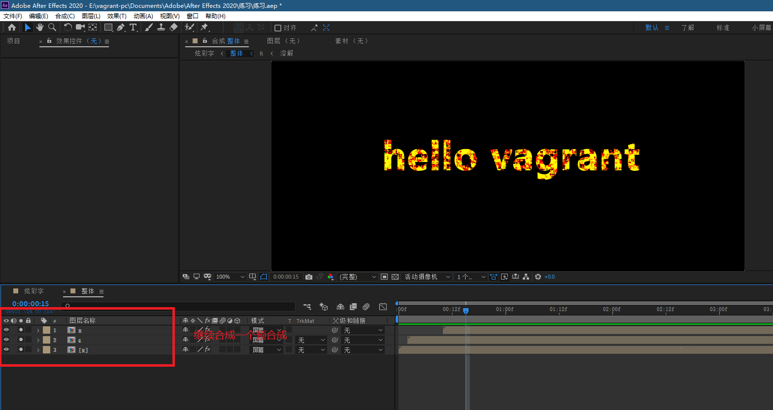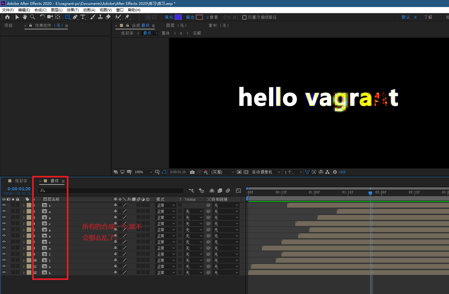 4、将所有的图层合成一个预合成,命名为"最终",至此该文字效果制作完成。