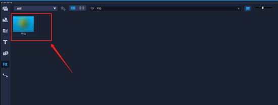 5、这个时候我们从监视器可以看到背景已经被填充满了,点击fx滤镜库,找到“平均滤镜”,并拖放到叠加1的视频上去。关于滤镜的使用讲解,如果有不明白的,还可以参考:会声会影添加fx滤镜特效。