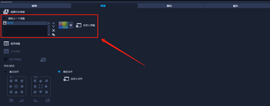 6、双击叠加1轨道视频,点击自定义滤镜。