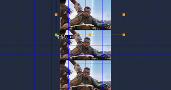 6、然后我们挪动该素材到最上面,比例模式下,通过拖动对角线,调整我们的位置,以确保填充前三行格子。
