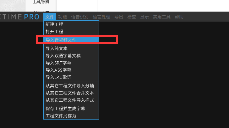 3、我们点击后就会弹出一个菜单我们选择里面的导入纯文本文件和视频文件